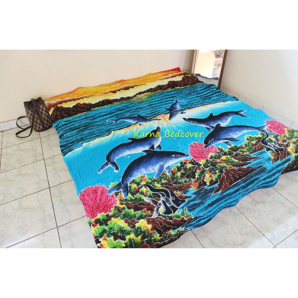 Bedcover Murah Tanpa Sprei Katun Berkualitas Uk 200 X 235 Cm Motif Batik Lukis Aquarium Biru Shopee Indonesia via shopee.co.id